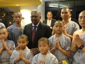 [ 校长赵振武与少林寺武僧团团长释延庄高僧合影 ]